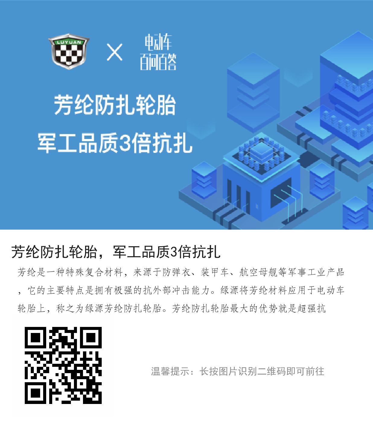 芳纶是一种特殊复合材料,来源于防弹衣、装甲车、航空母舰等军事工业产品,它的主要特点是拥有极强的抗外部冲击能力。绿源将芳纶材料应用于电动车轮胎上,称之为绿源芳纶防扎轮胎。